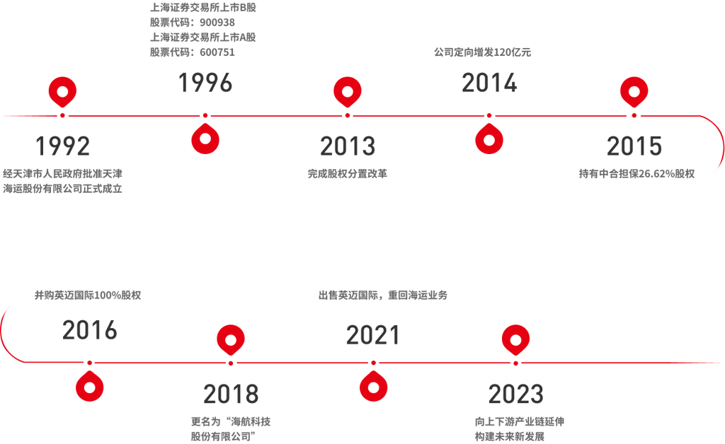 海航科技股份有限公司(以下簡稱“海航科技”,曾用名“天津市海運股份有限公司”、“天津天海投資發(fā)展有限公司”)是經(jīng)天津市政府批準于1992年12月1日設(shè)立的股份有限公司,股票分別在上海證券交易所主板A股(證券代碼600751)和B股(證券代碼900938)上市,公司總股本28.99億股(其中A股25.73億股,B股3.26億股)。主要業(yè)務(wù)包括航運、商品貿(mào)易、股權(quán)投資、物業(yè)經(jīng)營等方面。