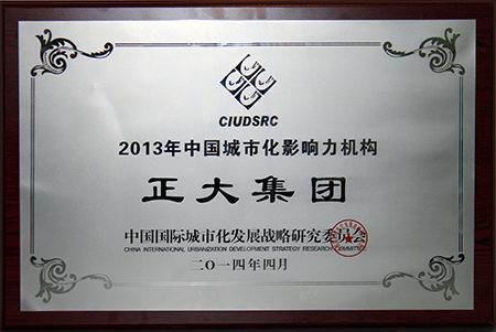 正大集團(tuán)榮膺“2013年中國城市化影響力機(jī)構(gòu)”榮譽(yù)稱號(hào)