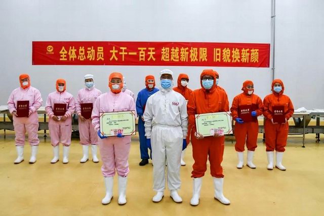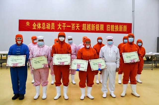 在鍋圈小酥肉包裝比賽中:熟食車間高娟榮獲一等獎,熟食車間王方方、副產(chǎn)車間張海鵬榮獲二等獎,調(diào)理車間王亞潔、分割車間周玲、屠宰車間崔二冰榮獲三等獎。