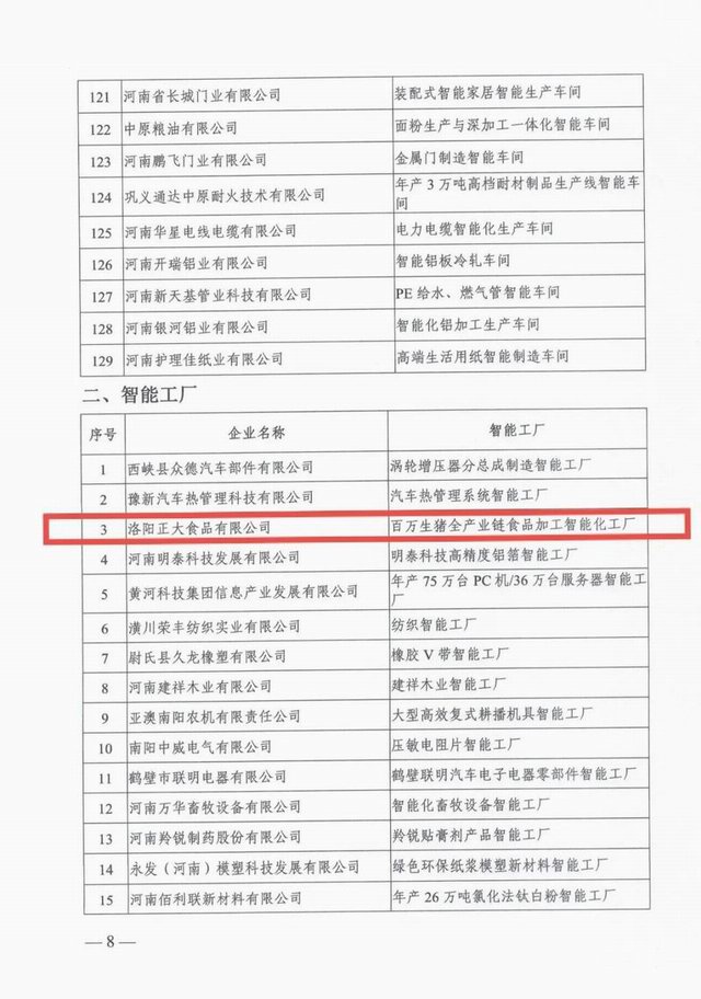 洛陽(yáng)正大獲評(píng)2021年河南省智能工廠