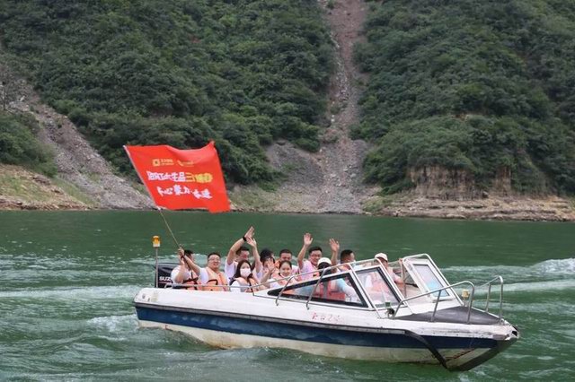 8月17日下午13時,團建隊伍前往云臺山紅石峽風景區(qū),各團隊你追我趕,團隊成員相扶相攜。大家沿著既定的路線,個個精神抖擻,臉上洋溢著快樂的笑容,一面欣賞優(yōu)美風光,一面在徒步中留下一片歡聲笑語。下午15時,所有戰(zhàn)隊順利完成了徒步挑戰(zhàn),成功抵達終點站。即使汗水浸濕了每個人的衣衫,但炎熱和疲憊沒有阻擋大家的前進,也沒能讓隊伍行進的速度有一絲一毫的減緩。團隊的信念激勵并支撐著大家不畏艱難地一直走下去,徒步如此,集團發(fā)展的腳步亦是如此。隨后,團建隊伍帶著隊旗登上快艇,穿梭于山水之間,正如生品銷售團隊披荊斬棘、尋光而行,乘風破浪、追夢奔跑。至此,本次團建活動也***落幕。
