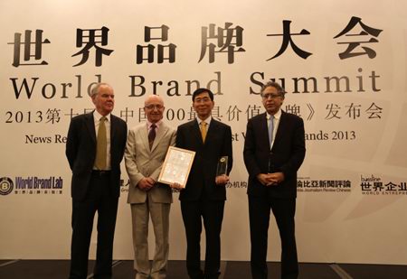 6月26日,由世界品牌實驗室、世界經(jīng)理人雜志等機構(gòu)主辦的世界品牌大會暨2013年第十屆《中國500***具價值品牌》發(fā)布會在北京東方君悅大酒店召開。會議發(fā)布了2013第十屆《中國500***具價值品牌》排行榜,正大集團(tuán)以208.86億元的品牌價值位居第88位。美國耶魯大學(xué)管理學(xué)院萊維·多爾教授(右一)、法國歐洲工商管理學(xué)院瓊·克勞德·拉里齊教授(左二)以及英國牛津大學(xué)商學(xué)院斯蒂芬·沃格教授(左一)為正大集團(tuán)頒獎。董事長辦公室(北京)楊海浩總裁(右二)代表集團(tuán)接受獎杯及證書。